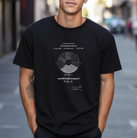 Old phonograph record design from US Patent Office. A quality T shirt perfect for music lover, hifi audiophiles, vinyl record collectors