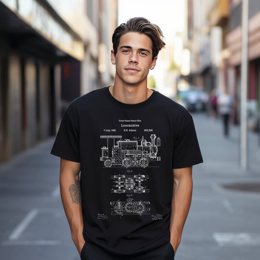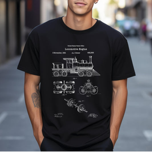 Old antique locomotive design from US Patent Office. A quality T shirt perfect for railway , train, railroad fans, transport, trainspotter