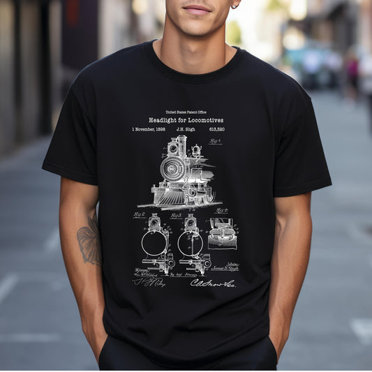 Old antique locomotive lighting design from US Patent Office. A quality T shirt perfect for railway , train, railroad fans, transport