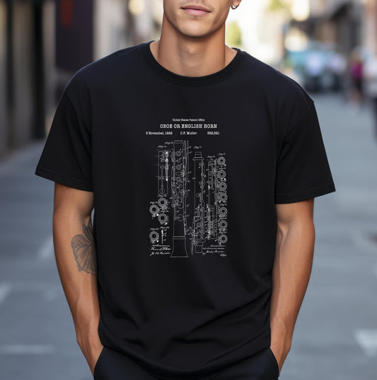 Old Oboe musical instrument design from US Patent Office. A quality T shirt perfect for musicians, music lovers, oboe plays ,woodwind band