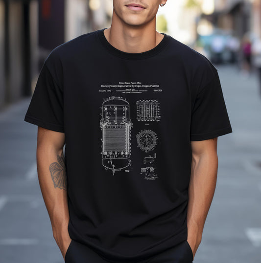 Hydrogen fuel cell NASA design from US Patent Office. A quality T shirt perfect for scientists, engineers or those interested in science