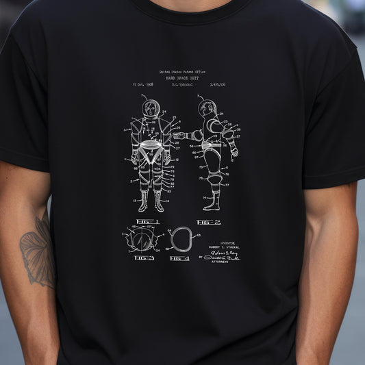 Hard space suit design T shirt from the US Patent Office . Perfect gift for any with interest in space, aviation, scientist, engineer, tech