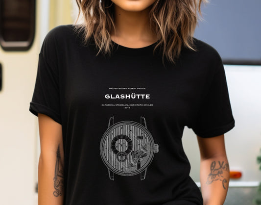 T shirt with US patent office design for Glashutte watch from 2015. Quality T shirt as gift for watch collectors, watches, luxury timepiece