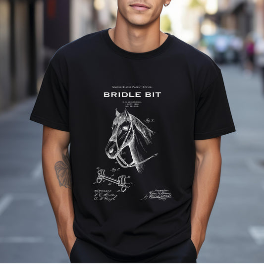 T shirt with US patent design from 1896 for a vintage bridle bit for a horse. Quality T shirt as gift for horse, animal lovers, horses