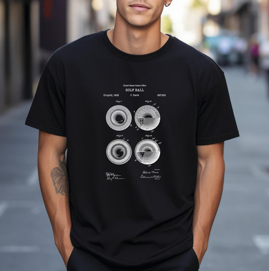 Old golf ball design from 1908 patent from the US Patent Office. A quality T shirt as gift for any golfer or sport history enthusiast