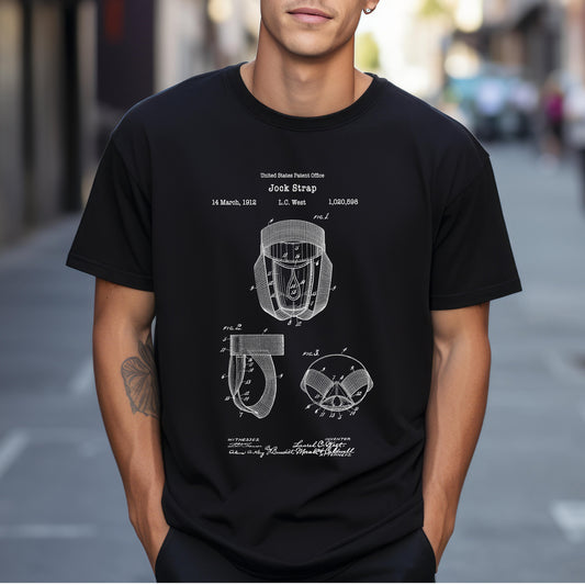 Sports jockstrap design from US Patent Office. A quality fun T shirt perfect for sportsmen and women, athletes, athletics