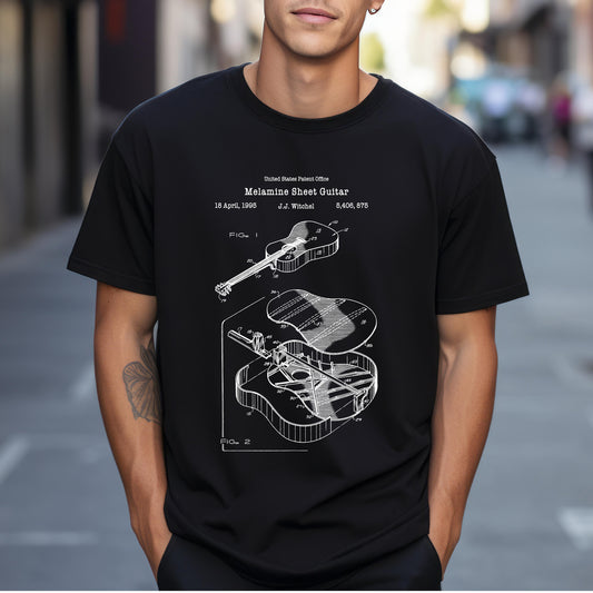 Melamine sheet guitar design from US Patent Office. A quality T shirt perfect for guitarists, music lovers, musicians, guitar fans