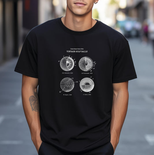 Old golf ball designs from early 20th century from the US Patent Office. A quality T shirt as gift for any golfer or sport history buff