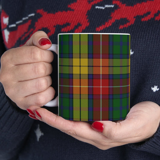 Buchanan mug. The elegant and colourful tartan on this mug is taken from the Scottish Register of Tartans based in Scotland.