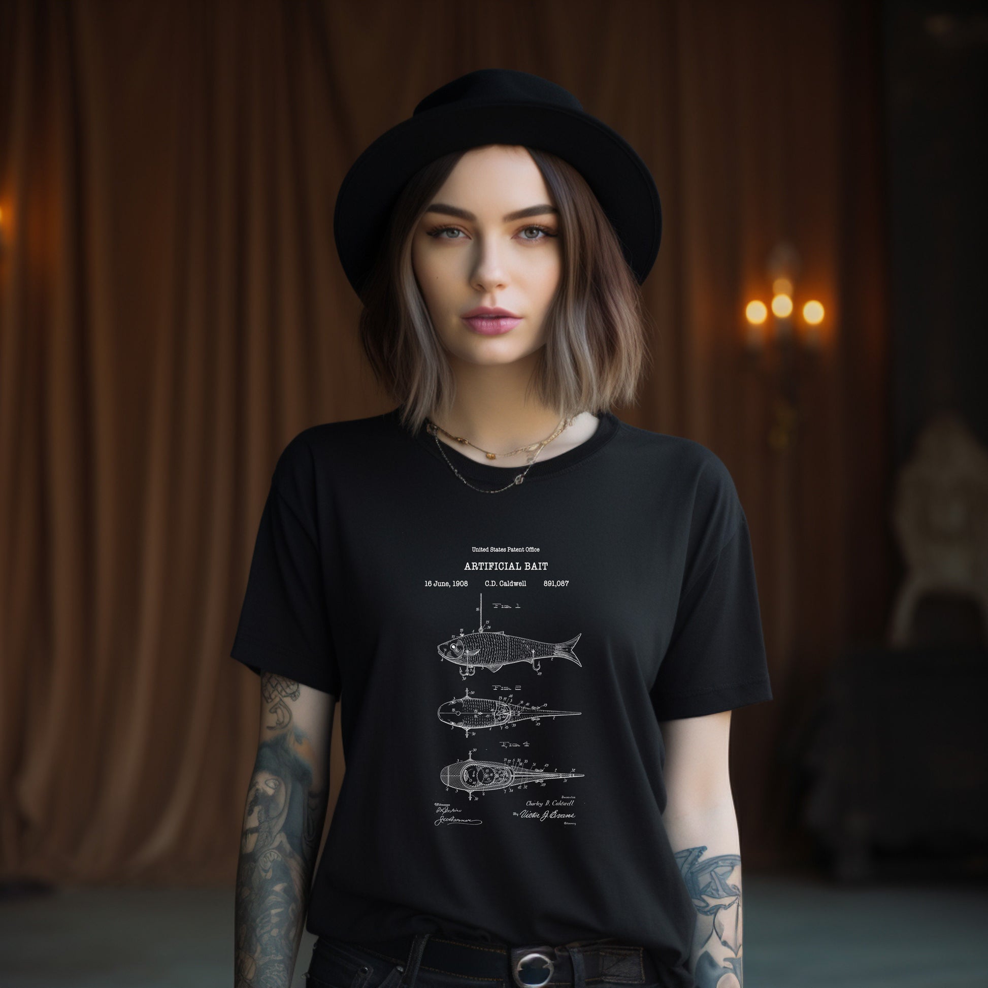 Artificial bait patent from 1908 from the US Patent Office. A quality T shirt as gift for any fishing or angling enthusiast.